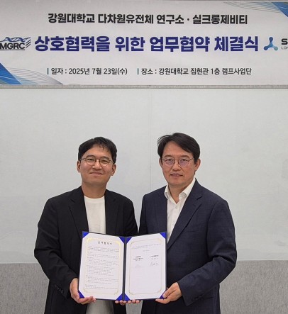 다차원유전체연구소(소장 박종민)는 바이오 스타트업 실크롱제비티(대표 송민호)와 7월 23일(수) 춘천캠퍼스 집현관에서 「다중오믹스 기반 AI 헬스케어 플랫폼 협력을 위한 양해각서(MOU)」를 체결했다.이번 협약은 유전체, 전사체, 단백체, 대사체, 지질체 등...